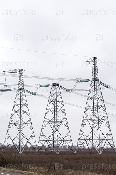 Высоковольтные столбы на фоне облачного неба