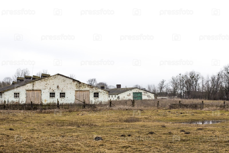 Старые амбары, старые кирпичные амбари в поле