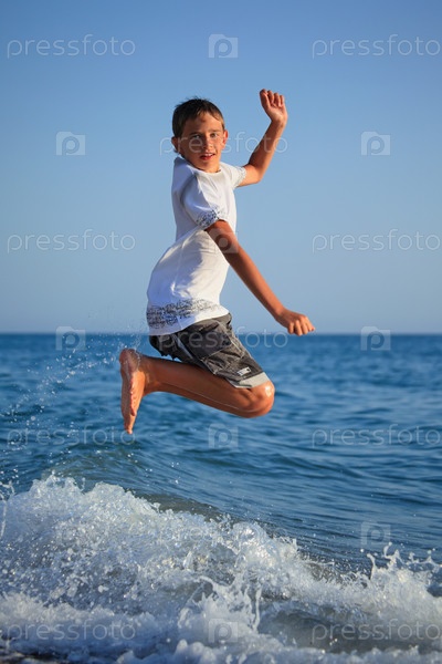 Мальчик прыгает в море