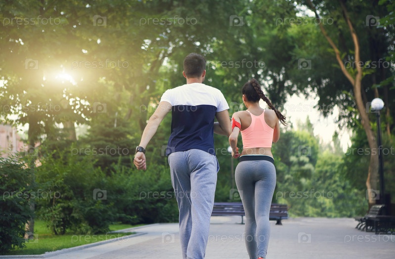 Пара бегает в парке
