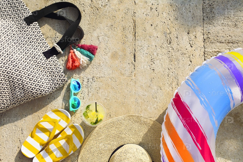 Пляжные аксессуары на фоне известняка