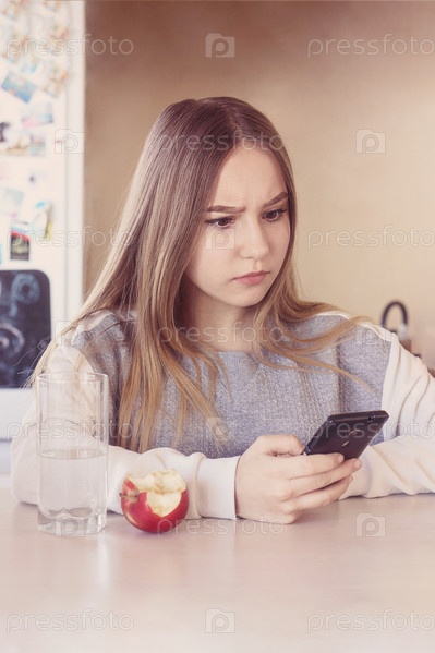Девочка-подросток держит телефон