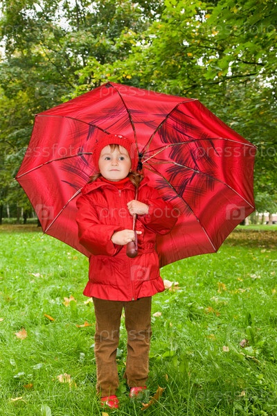 Маленькая девочка в парке с зонтом