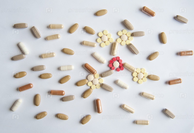 Различные таблетки на столе