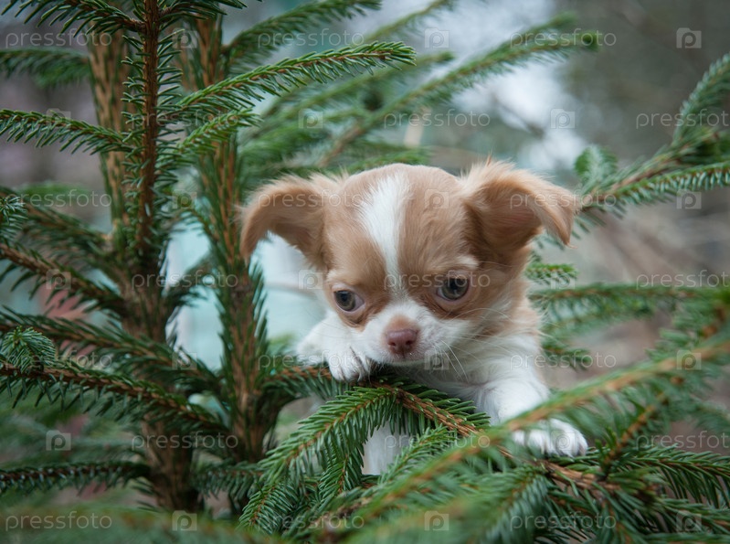 Щенок чихуахуа на дереве