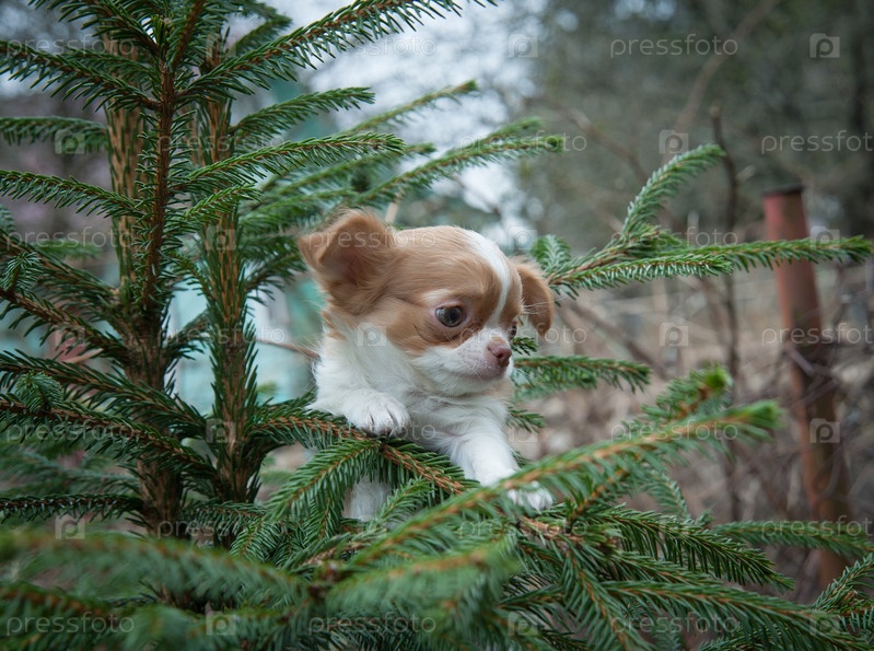 Щенок чихуахуа на дереве