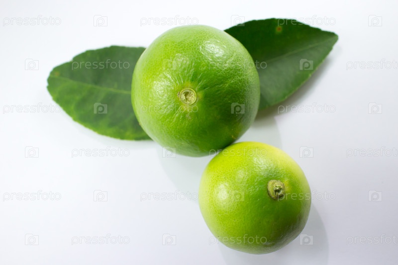 Лимон и зеленый лист на белом фоне