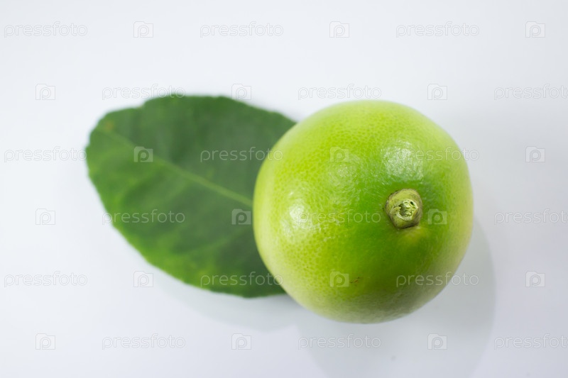 Лимон и зеленый лист на белом фоне