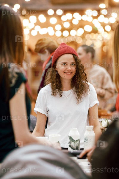 Девушка продает керамику ручной работы