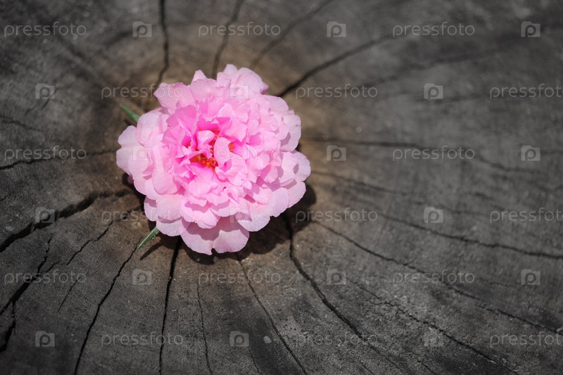Розовый портулак с деревянным фоном