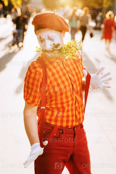Мим на улице в ожидании встречи со своим любовником