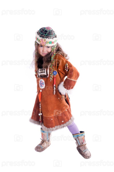 Девочка в костюме индейца на белом фоне