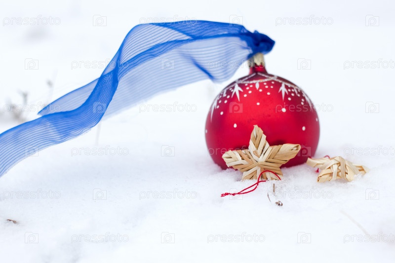 Шар, звезда и ангел на снегу