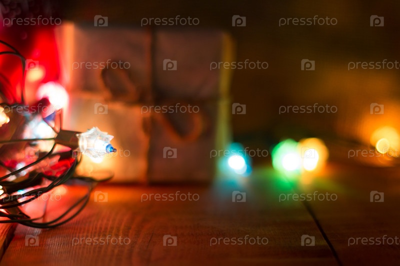 Подарочные коробки и гирлянда