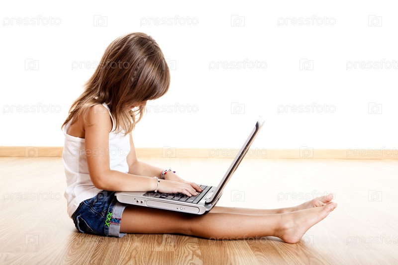 Ребенок, играющий с ноутбуком