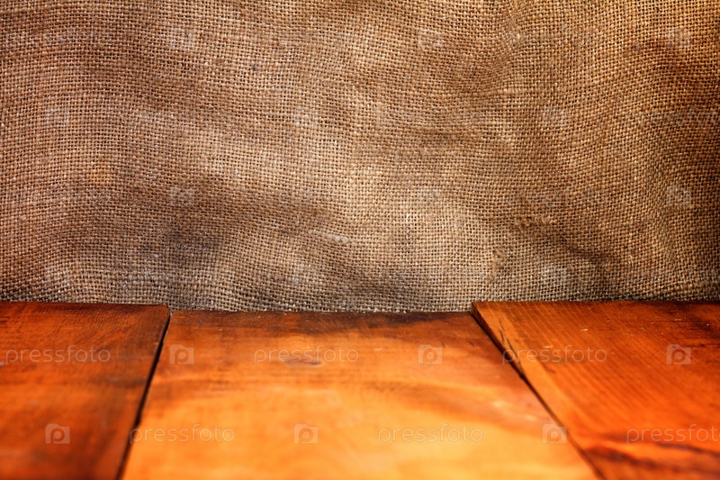 Деревянный стол и мешковина