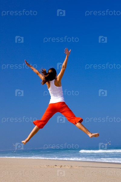 Молодая женщина прыгает