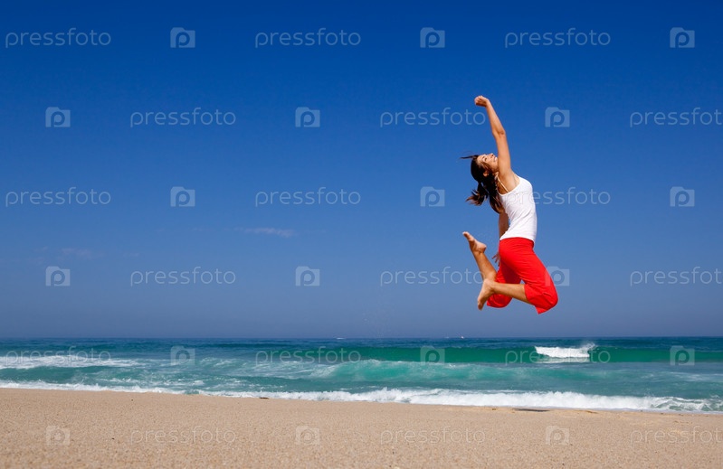 Молодая женщина прыгает