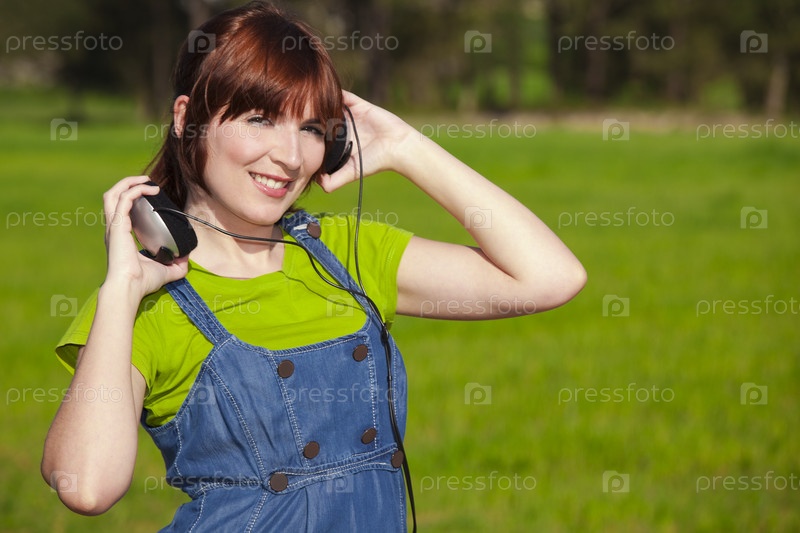 Счастливая женщина слушает музыку