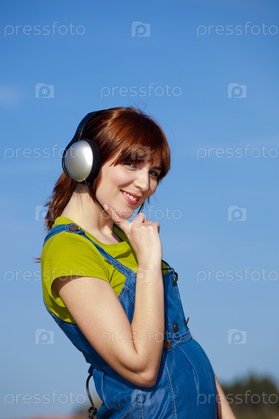 Счастливая женщина слушает музыку