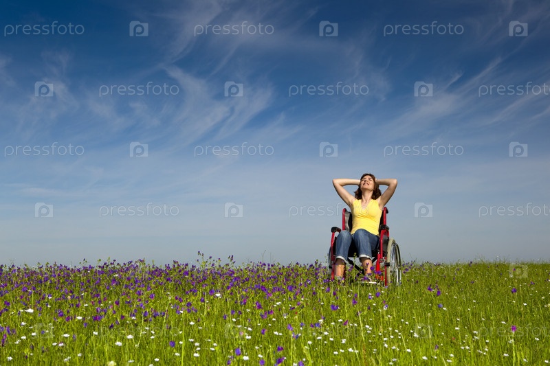Инвалидная женщина на инвалидном кресле