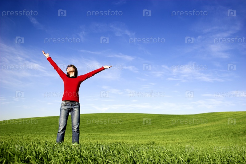 Женщина, расслабляющаяся в весенний день