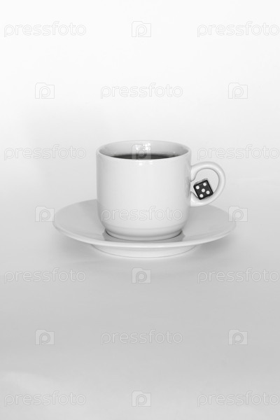 Чашка кофе с кубиками на белом фоне