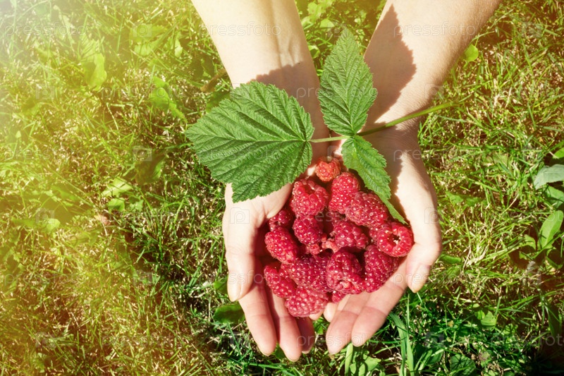 Спелая малина в руках