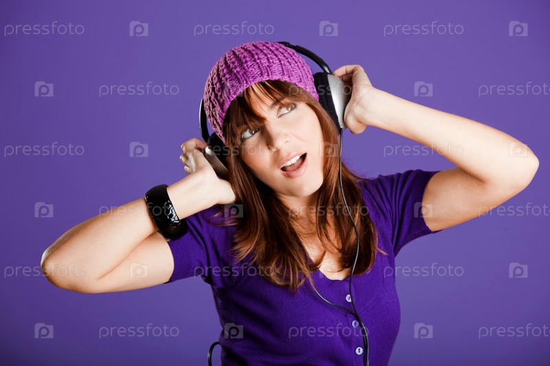 Красивая женщина, слушающая музыку