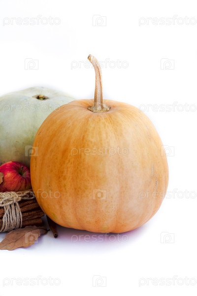 Тыквы, яблок и корица на белом фоне