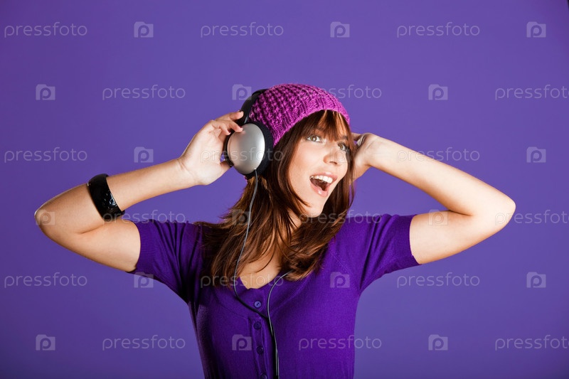 Красивая женщина, слушающая музыку