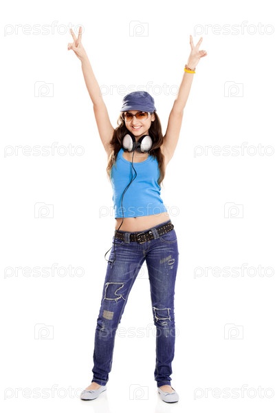 Молодая девушка слушает музыку