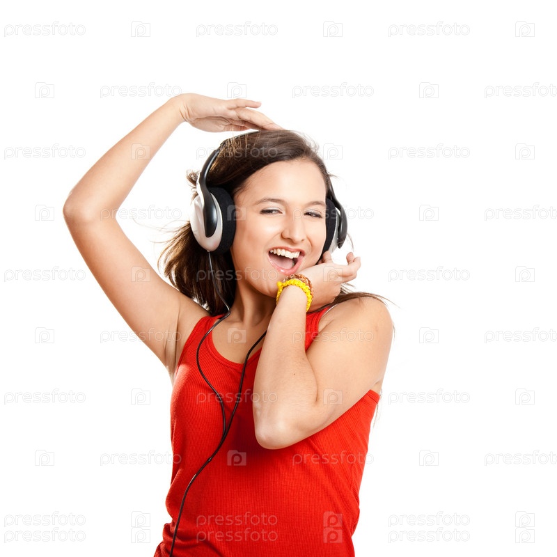 Молодая девушка слушает музыку