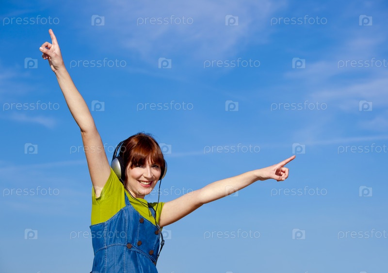 Счастливая женщина слушает музыку
