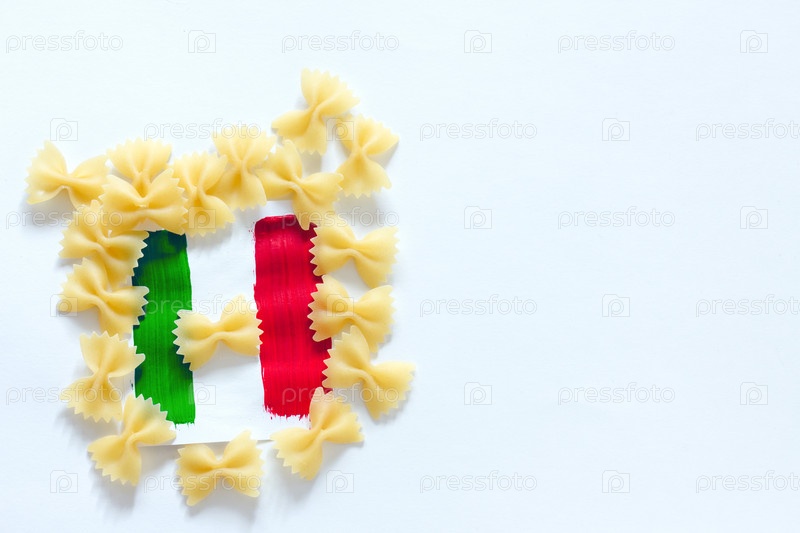 Паста и флаг Италии на белом фоне