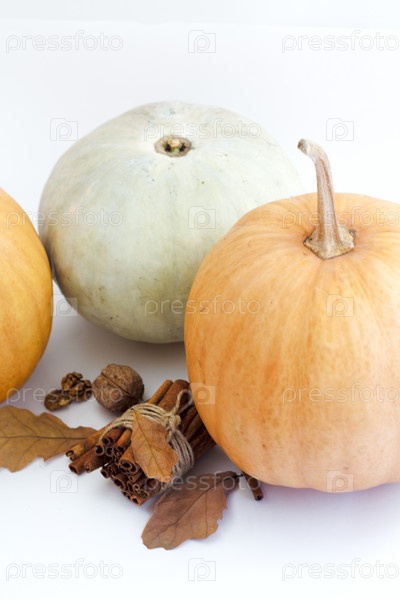 Осенние тыквы с корицей и осенние листья