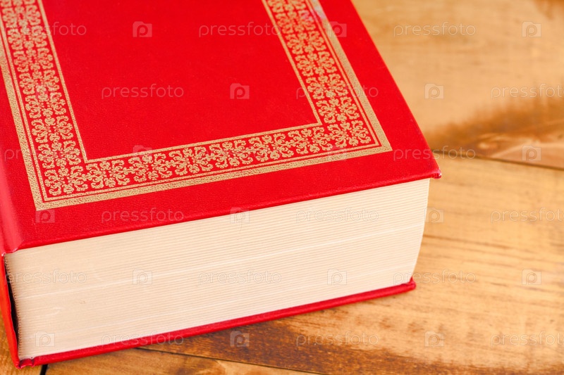 Закрытая красная книга на деревянном фоне
