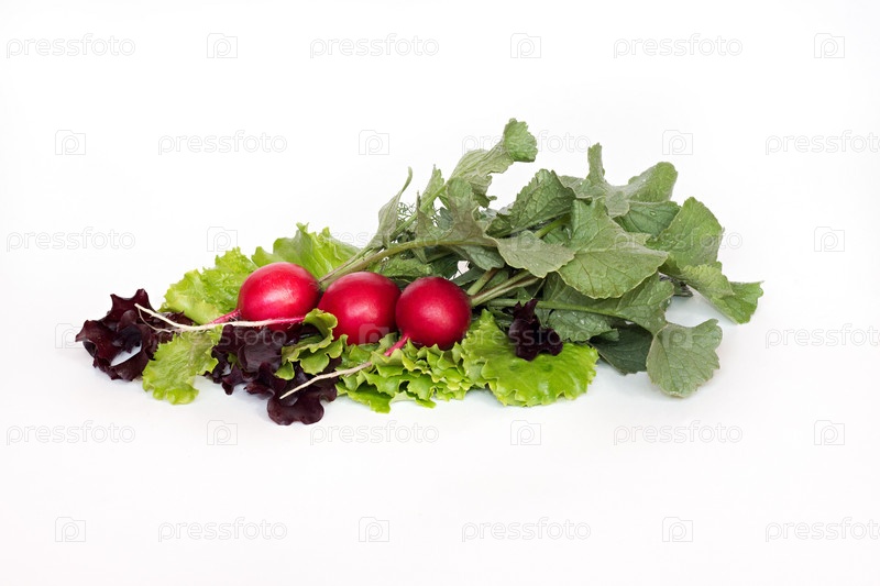 Свежий красный редис на белом фоне