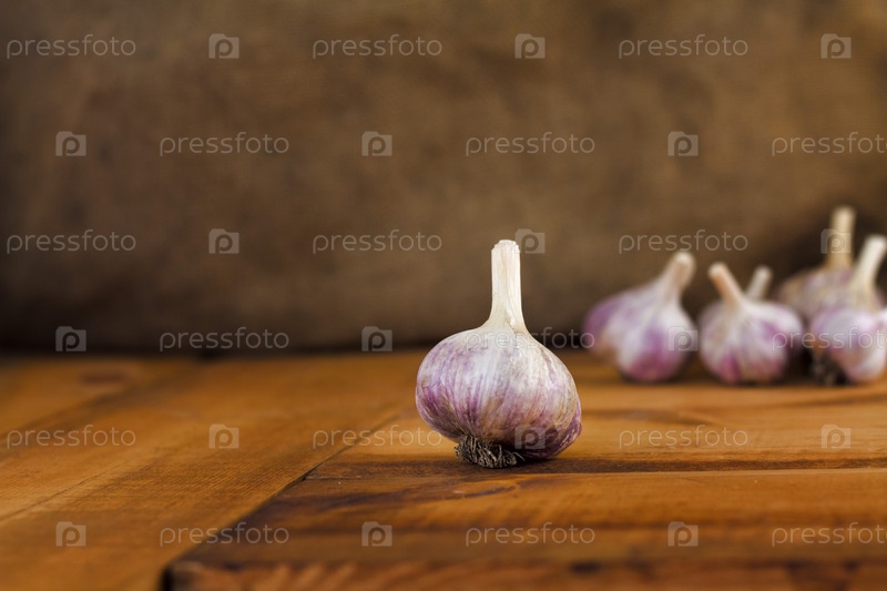 Чеснок на деревянном фоне