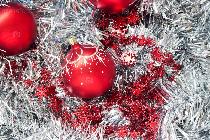 Рождественский шар на серебряной мишуре