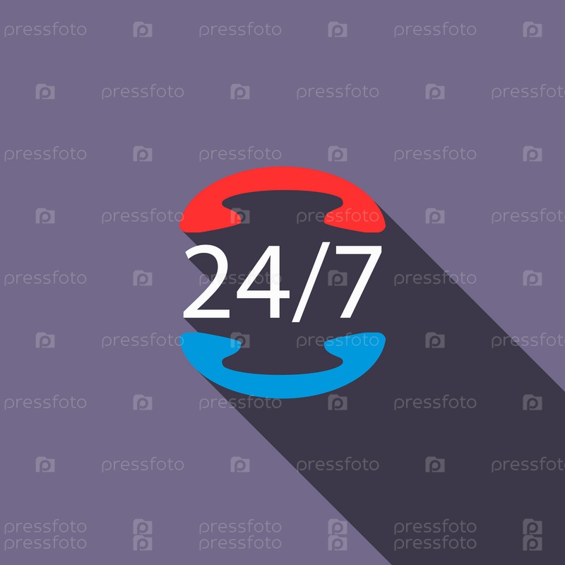 Икона колл-центра поддержки клиентов весь день в плоском стиле на фиолетовом фоне
