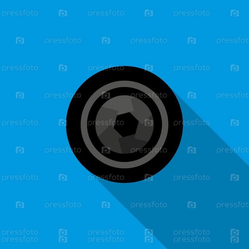 Икона диафрагмы камеры в плоском стиле на синем фоне
