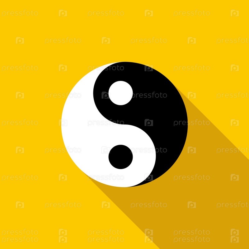 Икона Инь Янь в плоском стиле на желтом фоне