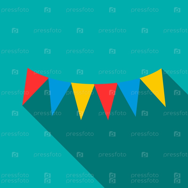 Красочные партийные флаги икона в плоском стиле на бирюзовом фоне