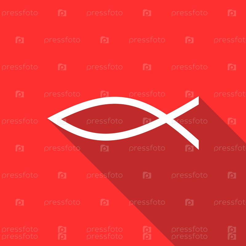 Икона христианского символа рыбы в плоском стиле на красном фоне