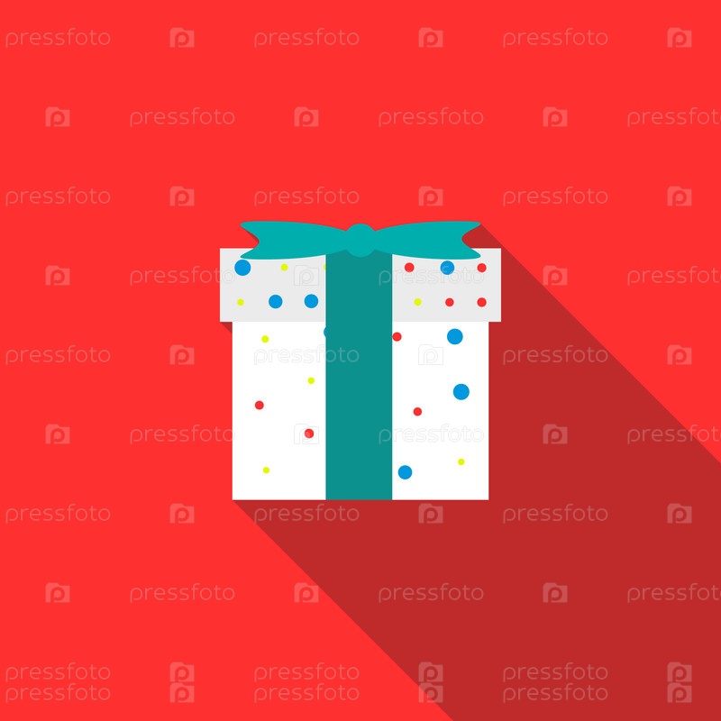 Белый подарочный ящик с синей иконой ленты в плоском стиле на красном фоне