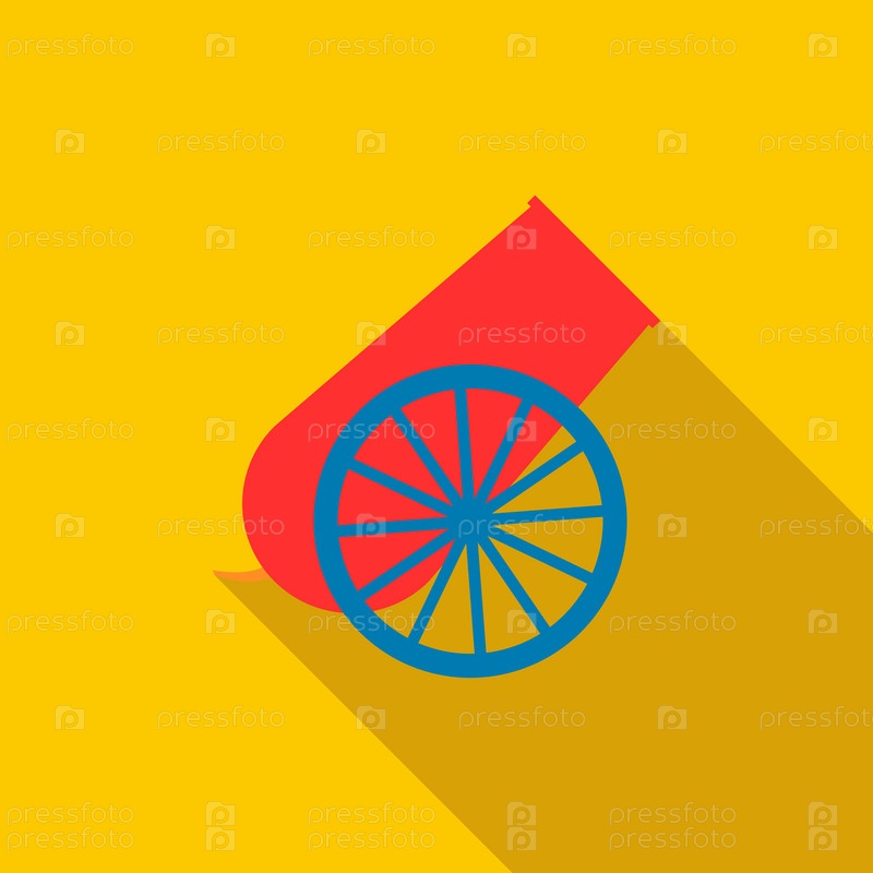 Икона цирковой пушки в плоском стиле на желтом фоне