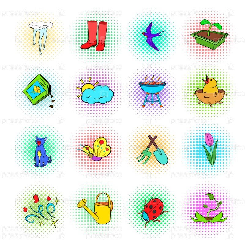 Весенний набор икон, стиль поп-арта