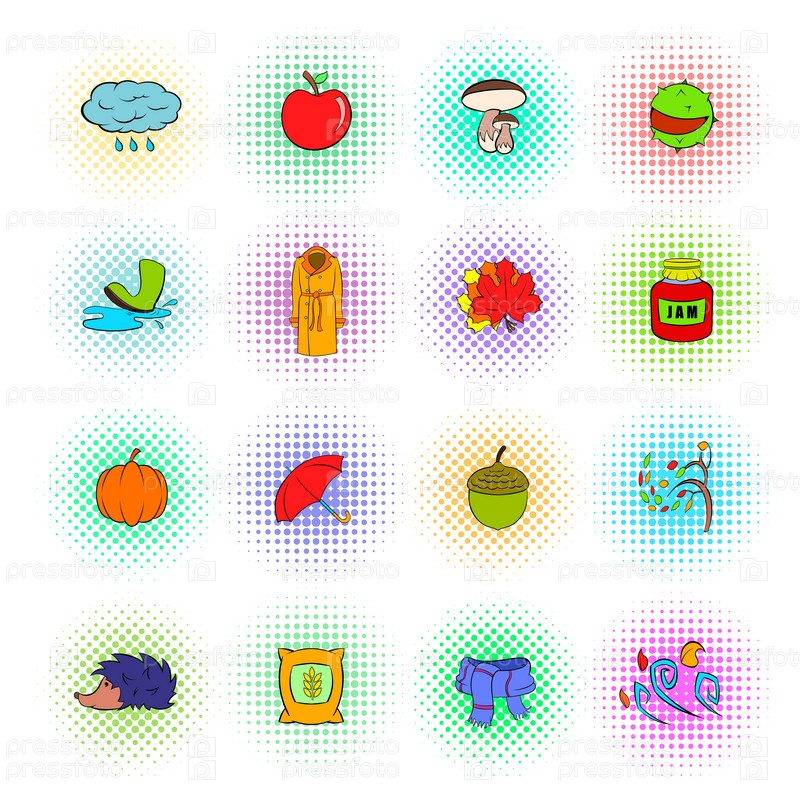 Осенний набор икон, стиль поп-арта