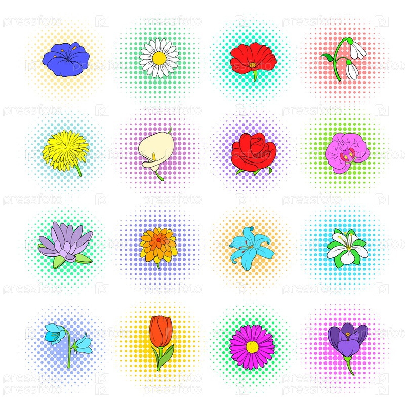 Набор цветочных икон, стиль поп-арта